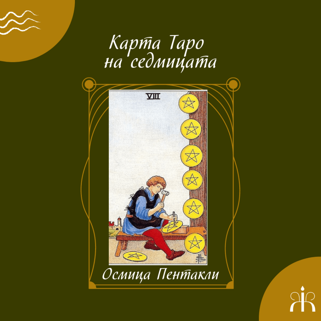 Интуицията ми избра Осмица Пентакли. Когато избирам по този начин, винаги има какво да ми каже съответният Аркан и този път едва ли ще бъде по-различно.