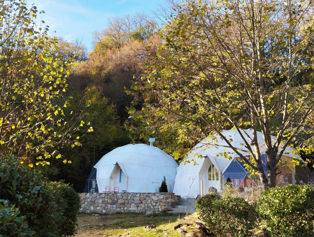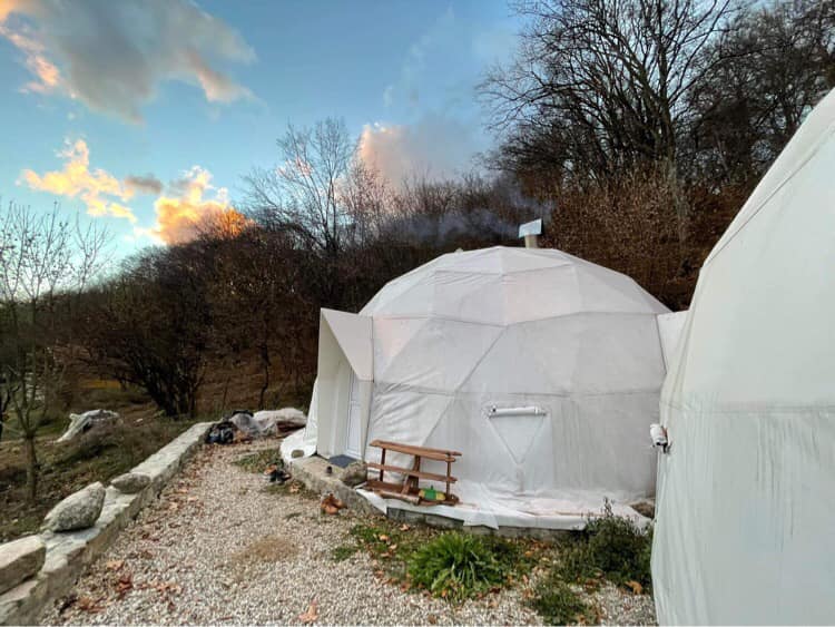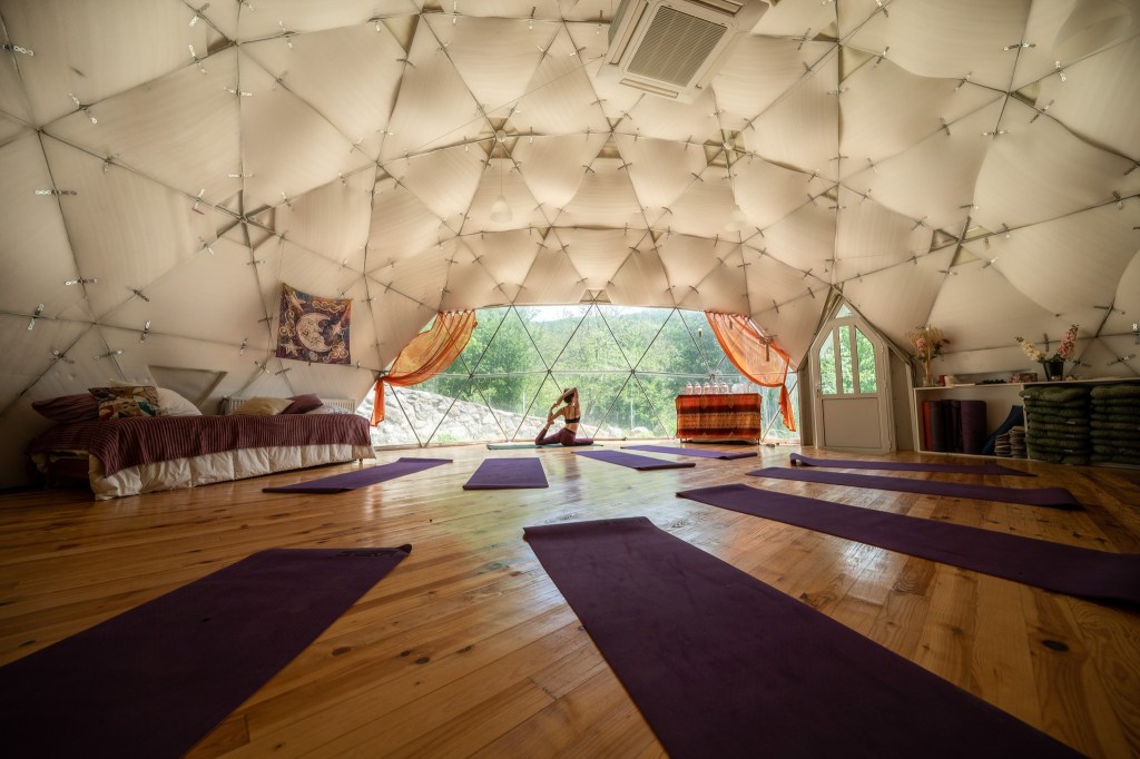 Геодезичната зала (с форма на купол) създава усещане за цялост, защита и енергийна хармония – идеална среда за дълбоки практики, разговори и ритуали.